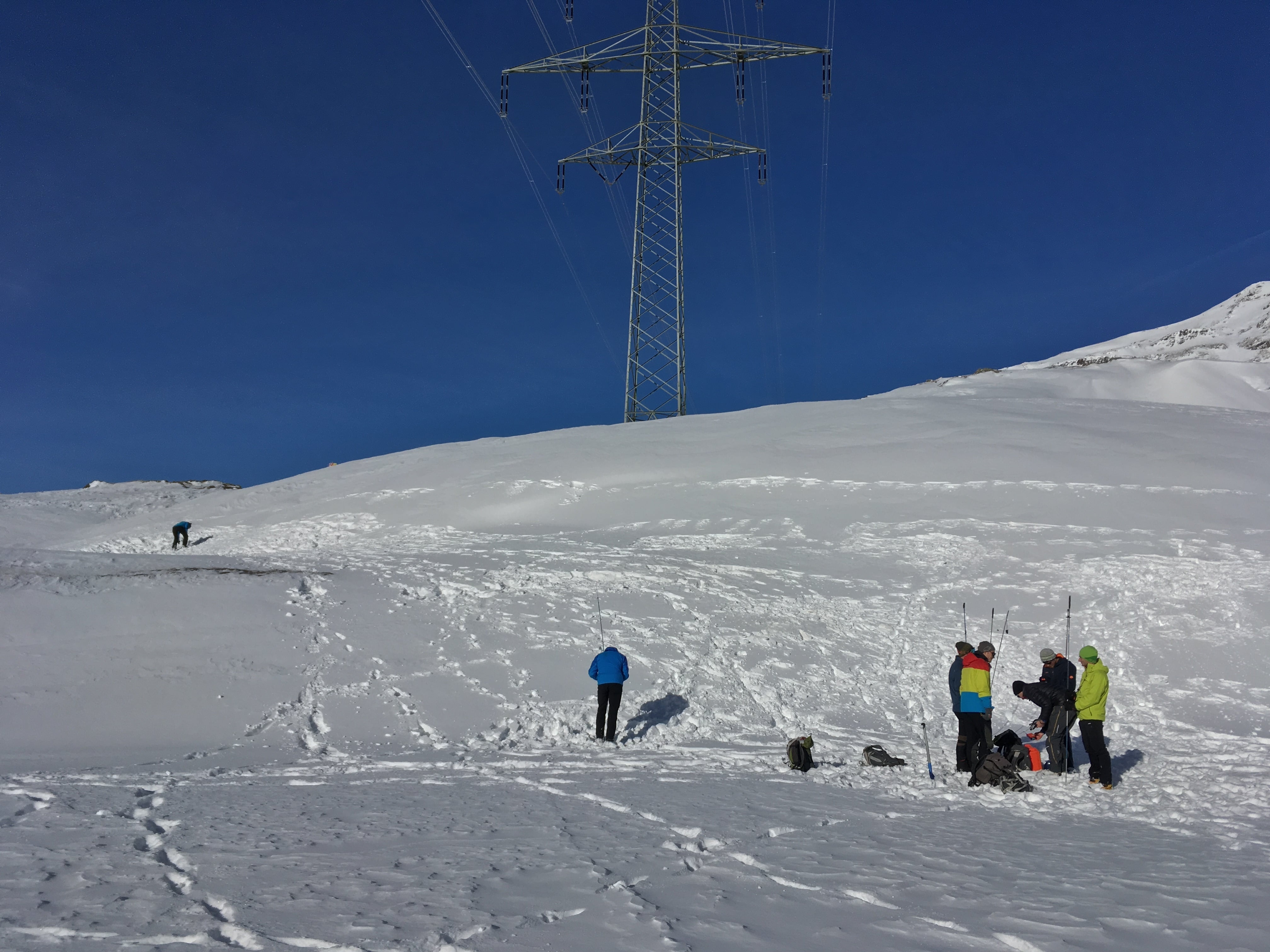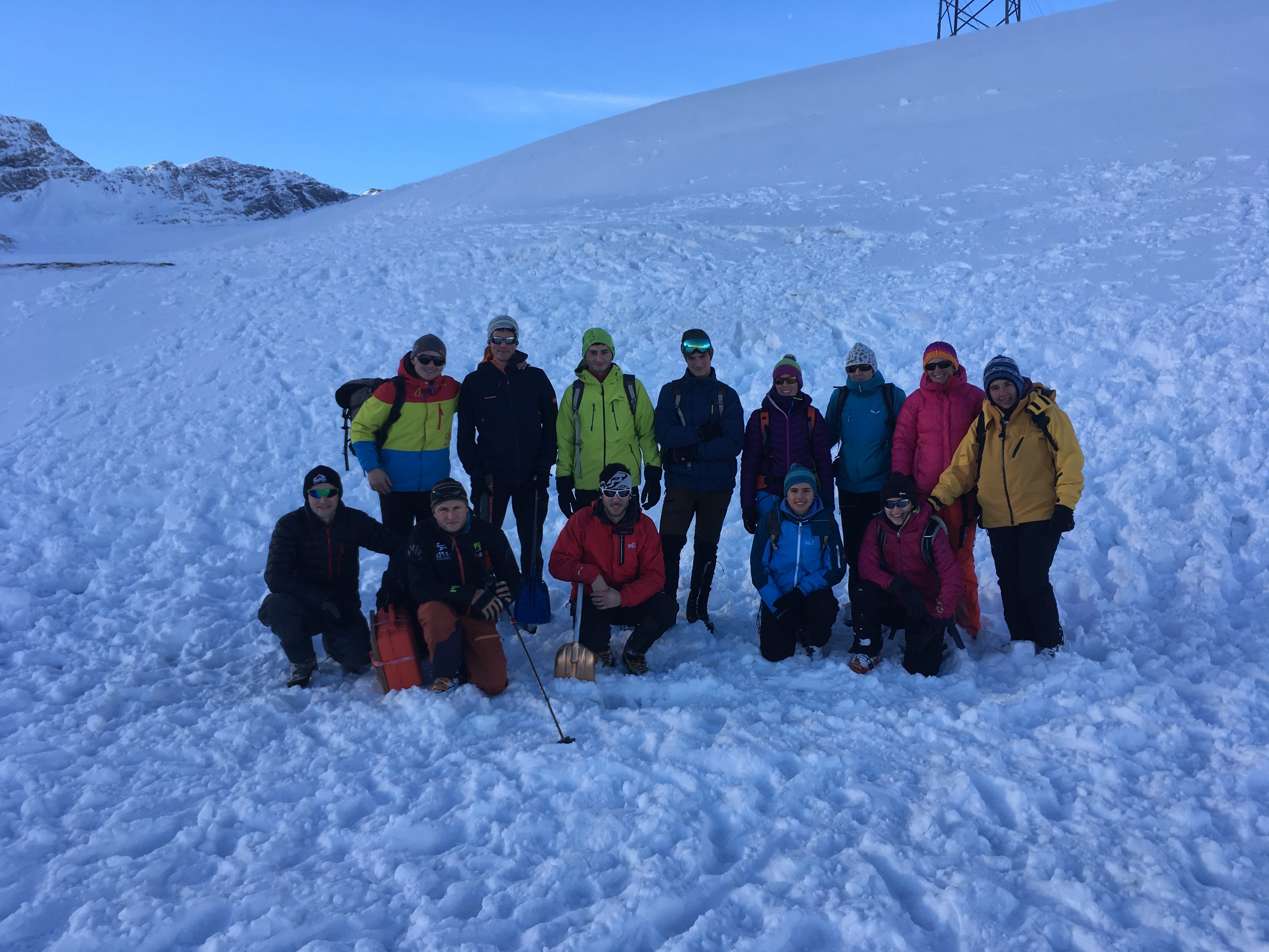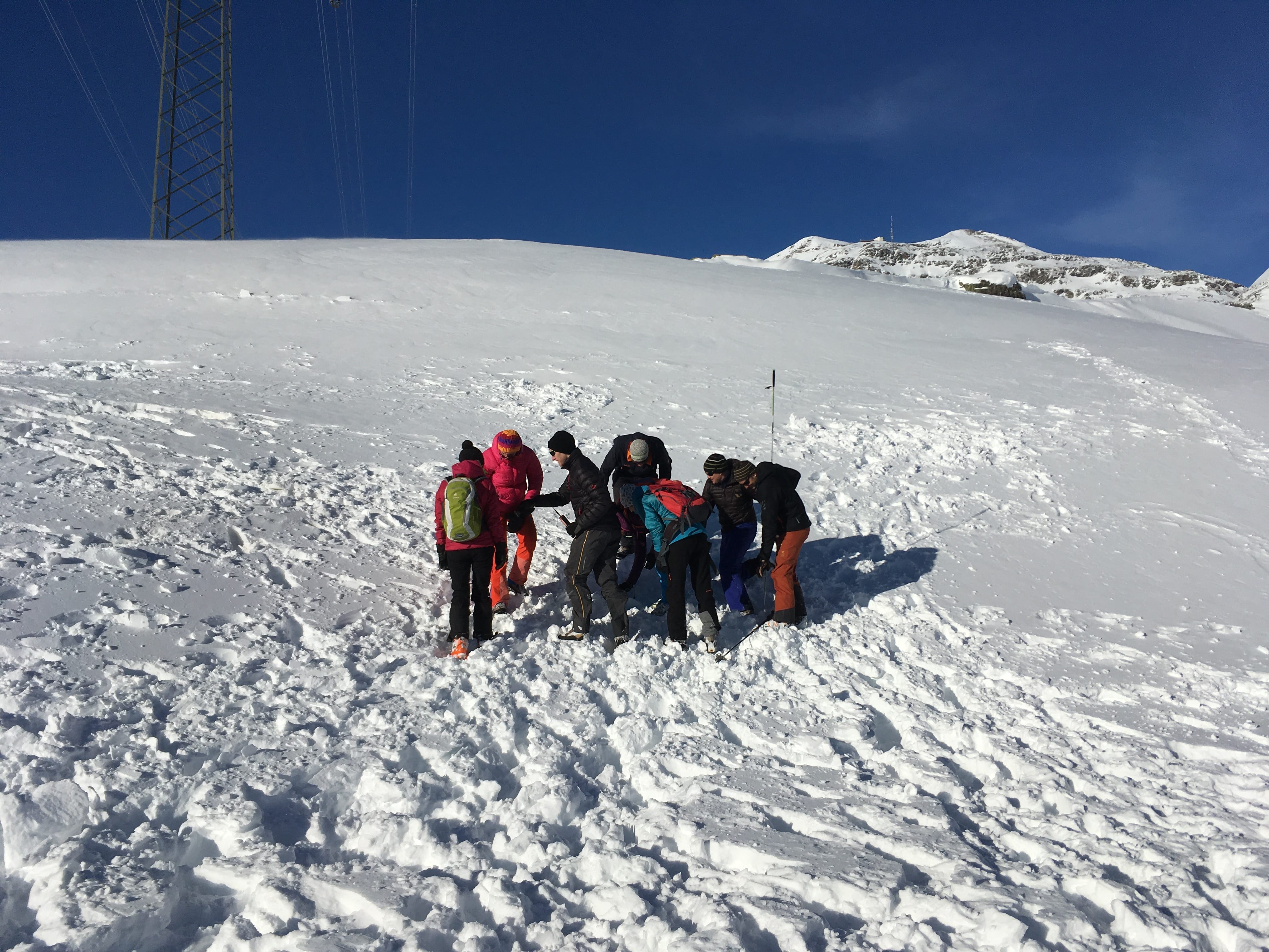 Un’ altra cosa molto importante da fare prima di avventurarsi in montagna quando c’é la neve é quella di pianificare il tragitto, consultare il bollettino meteo ed il bollettino valanghe. Verso le 10.30 ci siamo recati all’aperto dove abbiamo formato due gruppi per la parte pratica. Questa parte consisteva nel conoscere e saper usare l’equipaggiamento per cercare le persone che rimangono travolte in una valanga. Per chi non aveva ancora avuto la possibilità di usare questi apparecchi è stata fatta un’istruzione di base, mentre per chi aveva già una minima conoscenza di questo equipaggiamento sono stati fatti degli esercizi pratici nella neve.